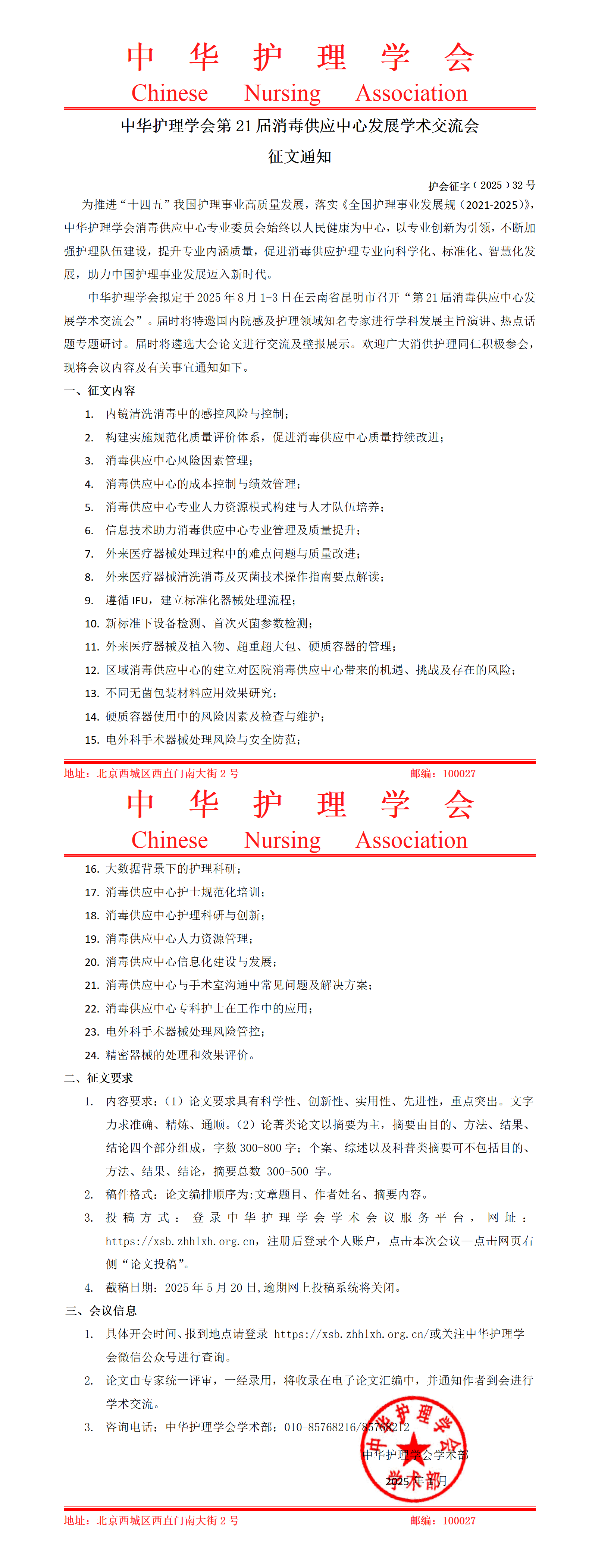 為推進“十四五”我國護理事業(yè)高質量發(fā)展,落實《全國護理事業(yè)發(fā)展規(guī)(2021-2025)》, 中華護理學會消毒供應中心專業(yè)委員會始終以人民健康為中心,以專業(yè)創(chuàng)新為引領,不斷加 強護理隊伍建設,提升專業(yè)內涵質量,促進消毒供應護理專業(yè)向科學化、標準化、智慧化發(fā)展,助力中國護理事業(yè)發(fā)展邁入新時代。